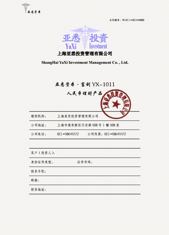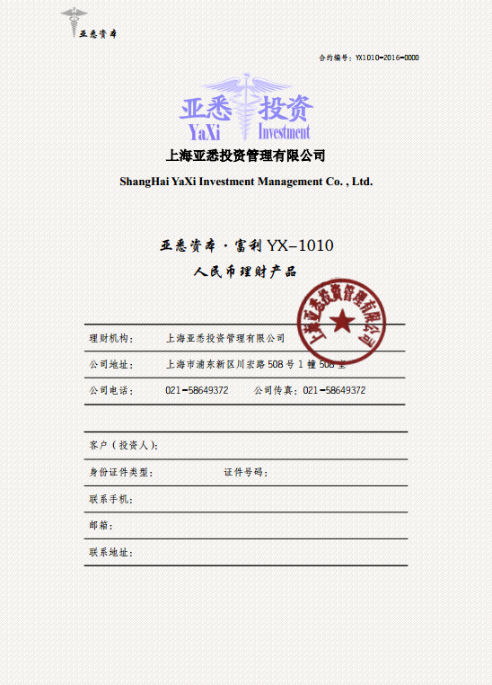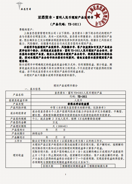 二、亚悉资本·富利YX-1011人民币理财产品(